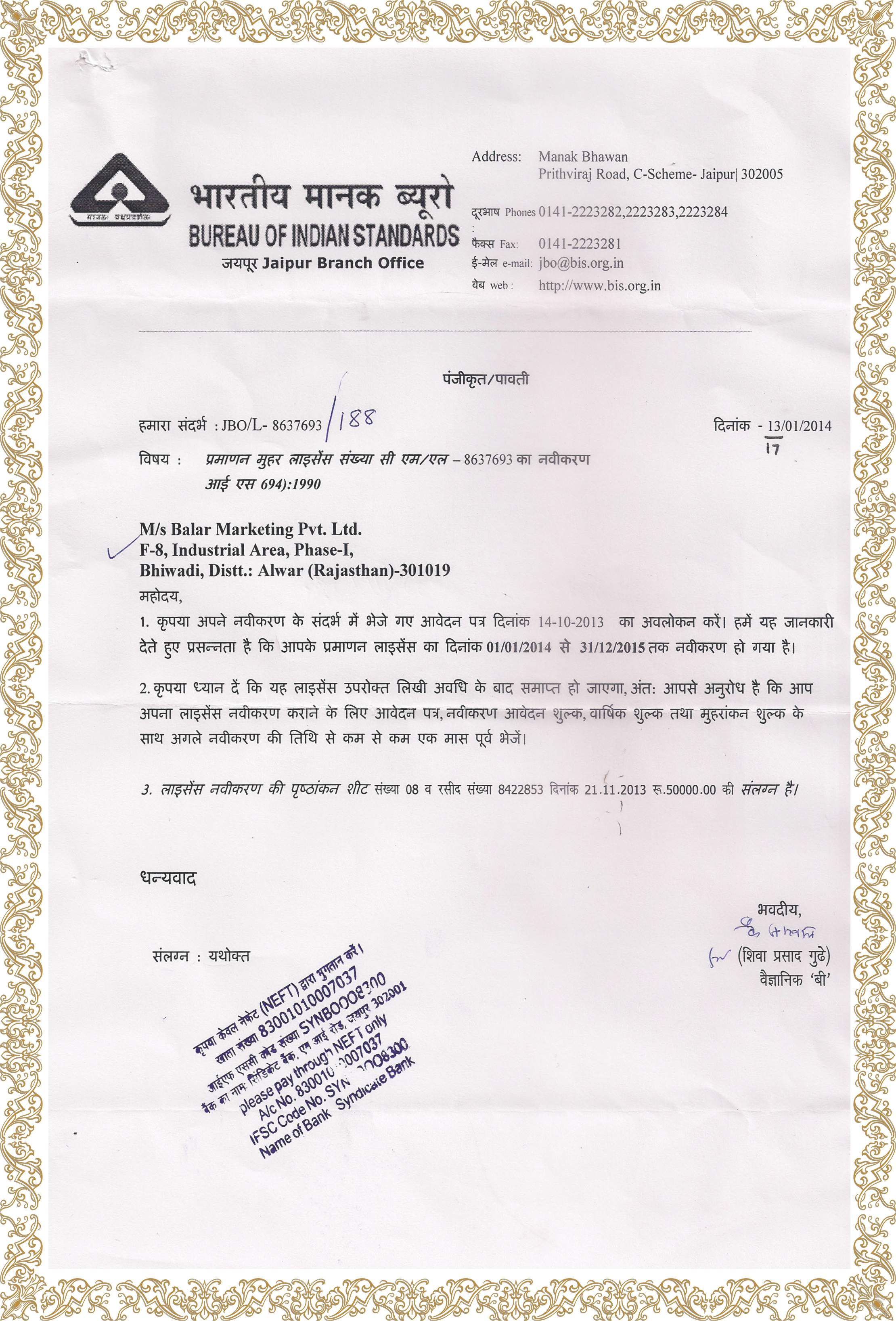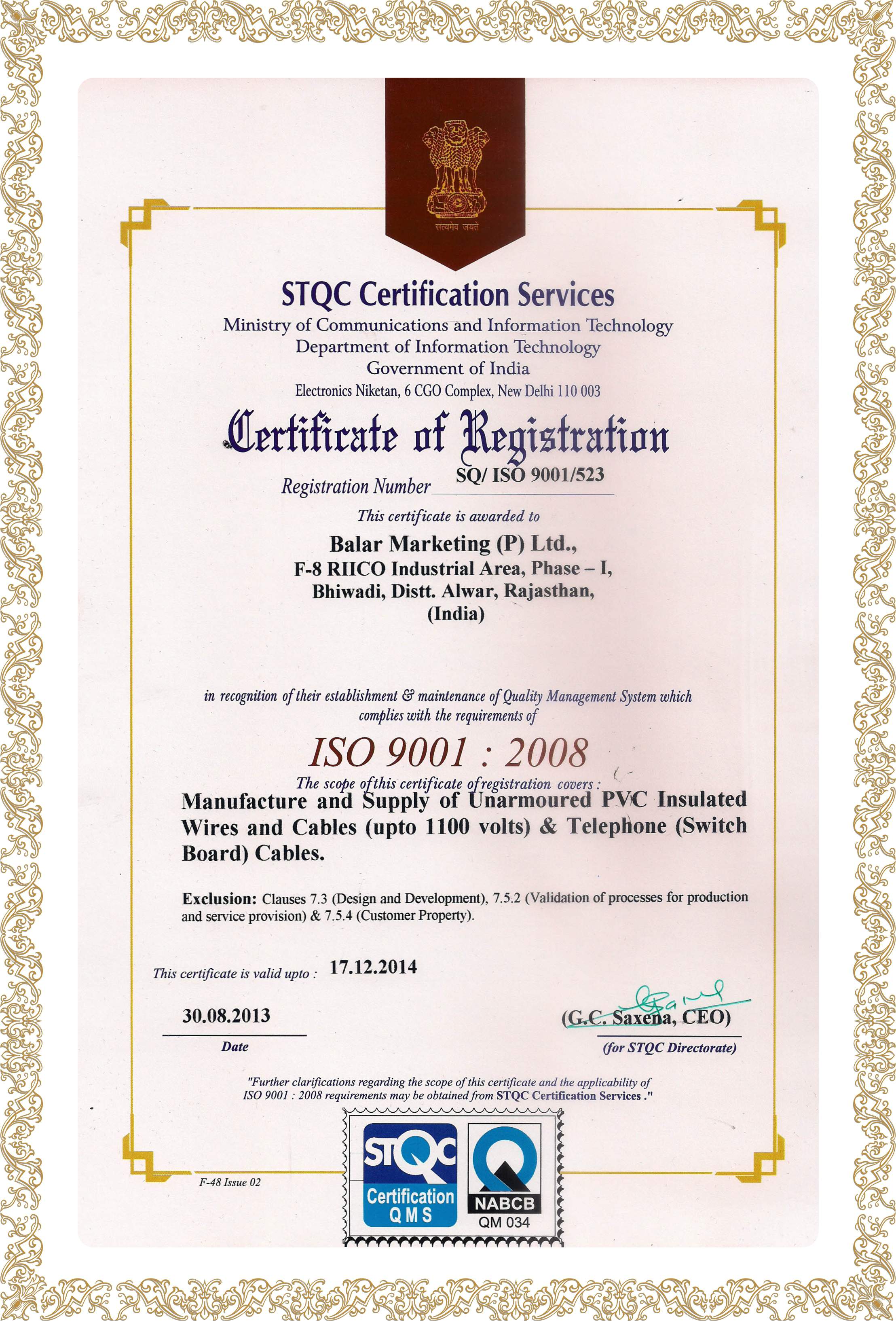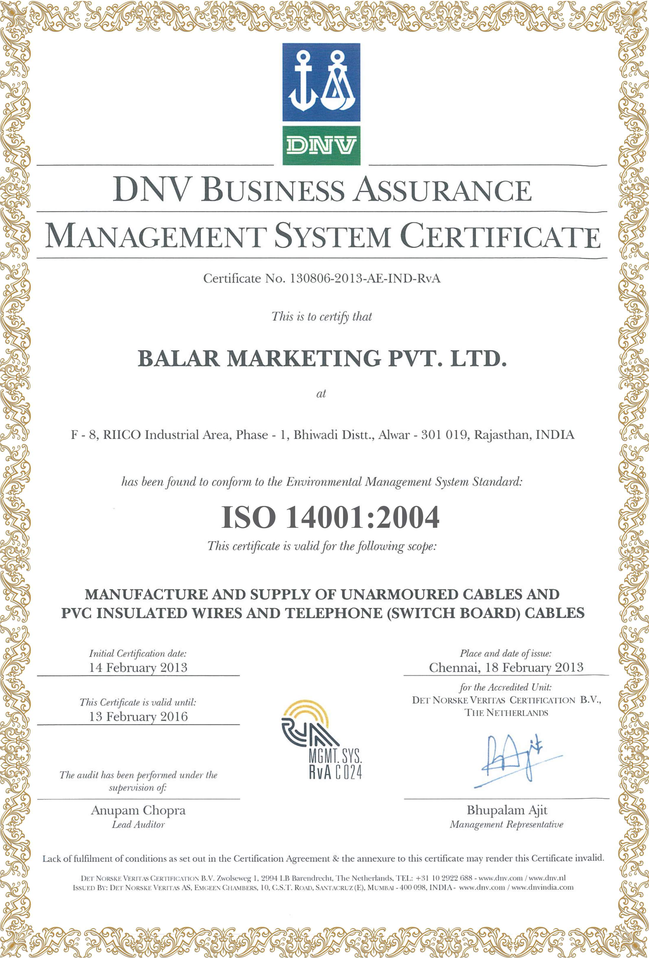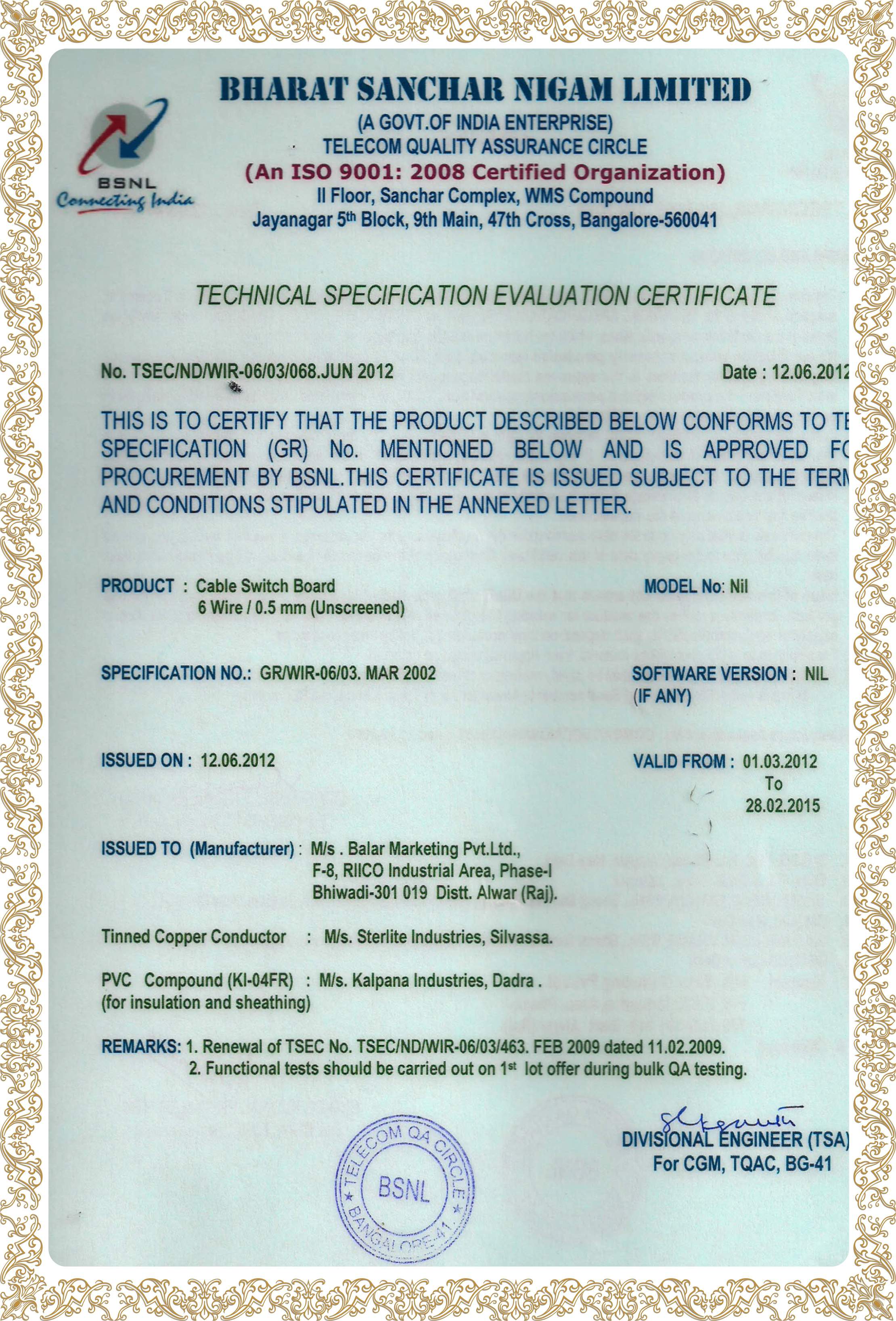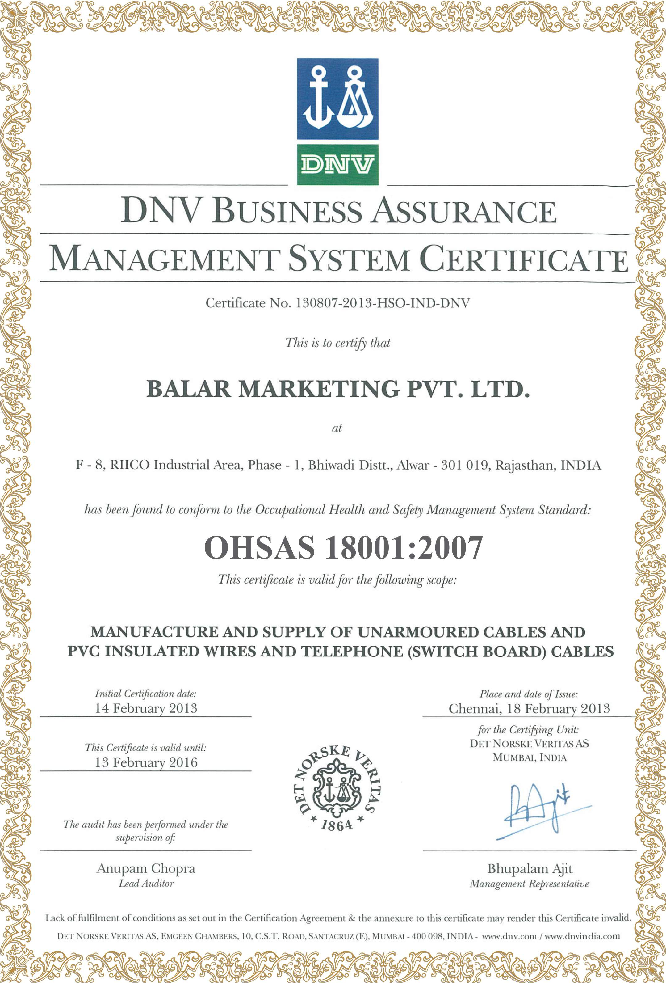 Certificates and Approvals