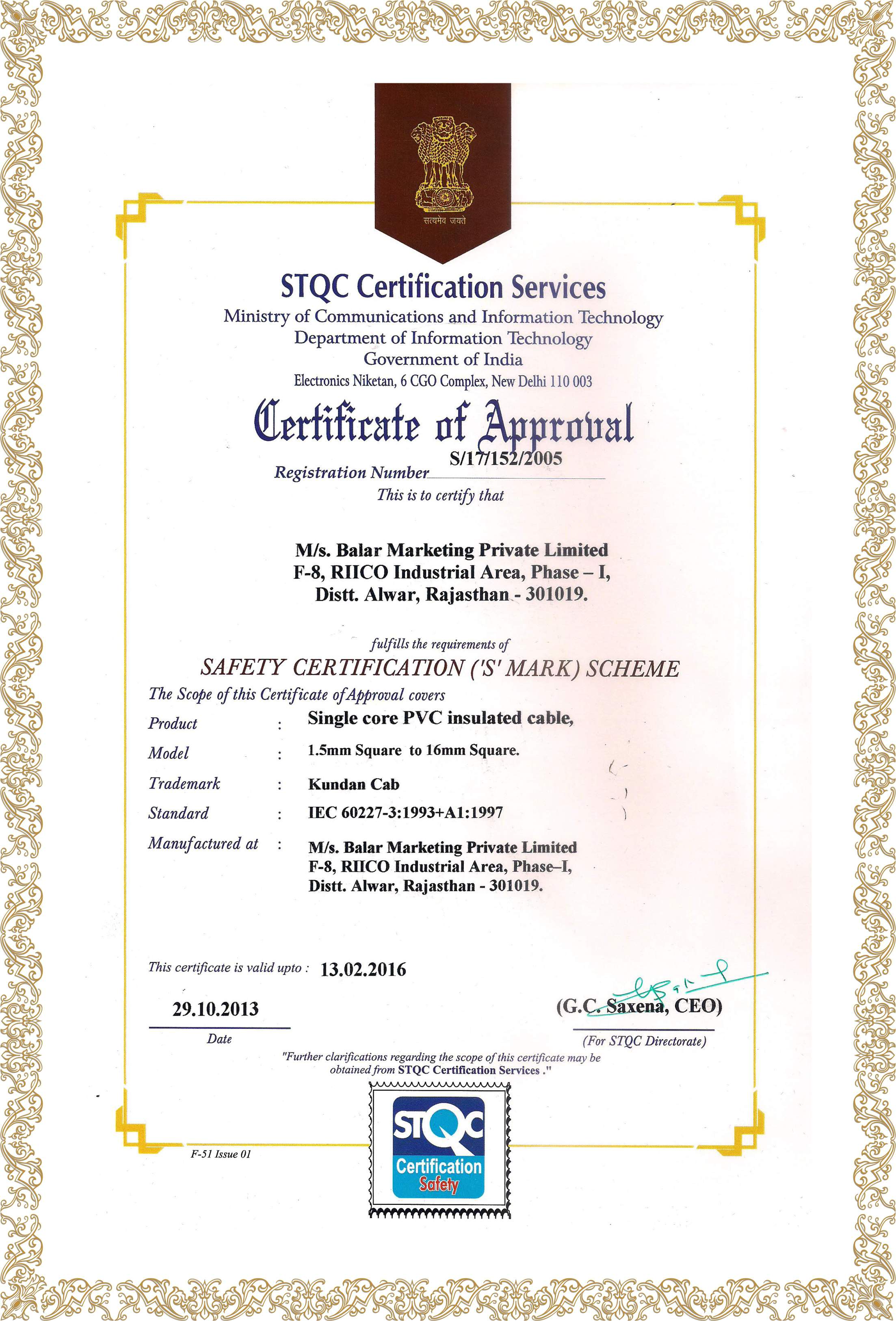 Certificates and Approvals